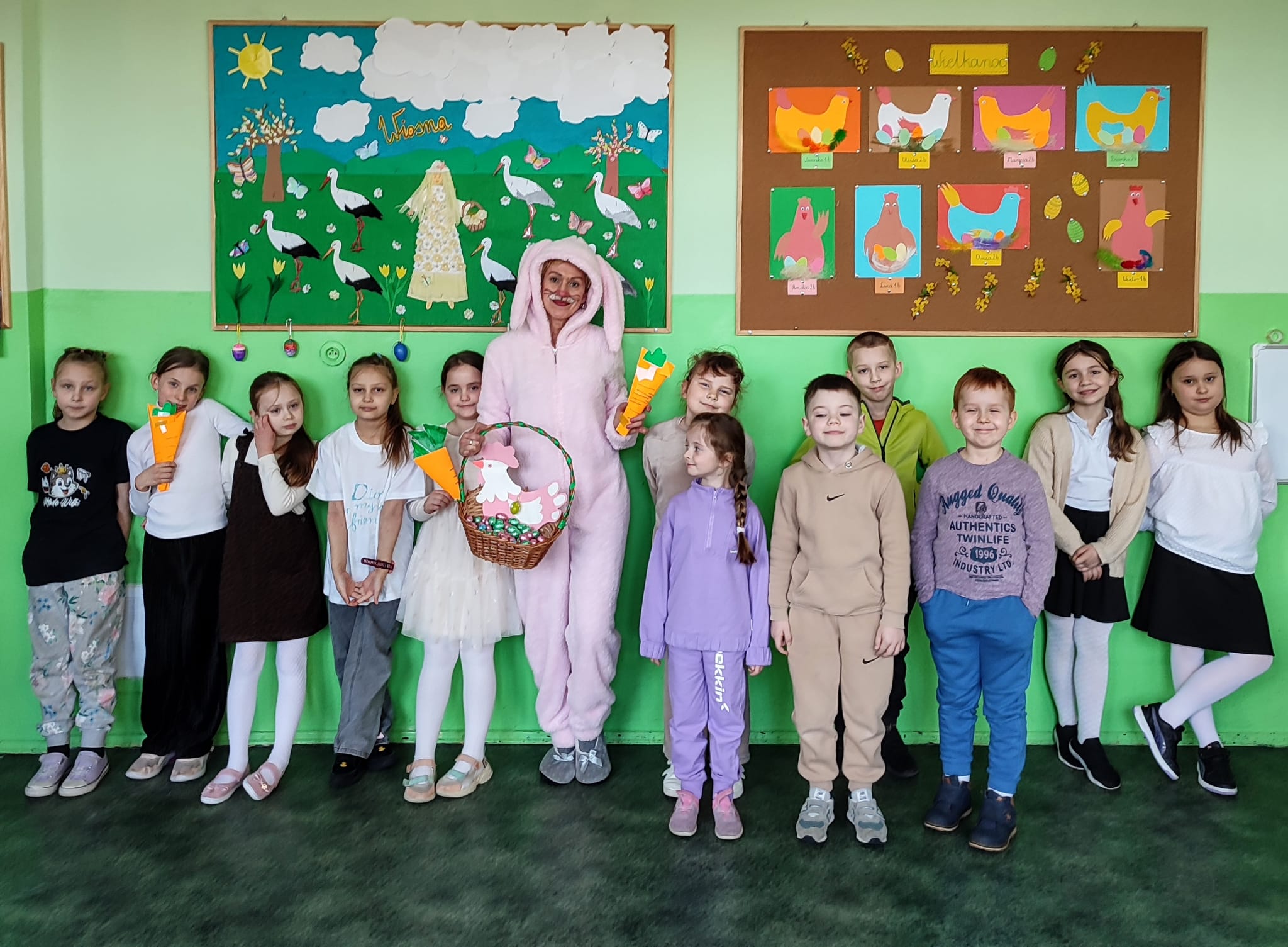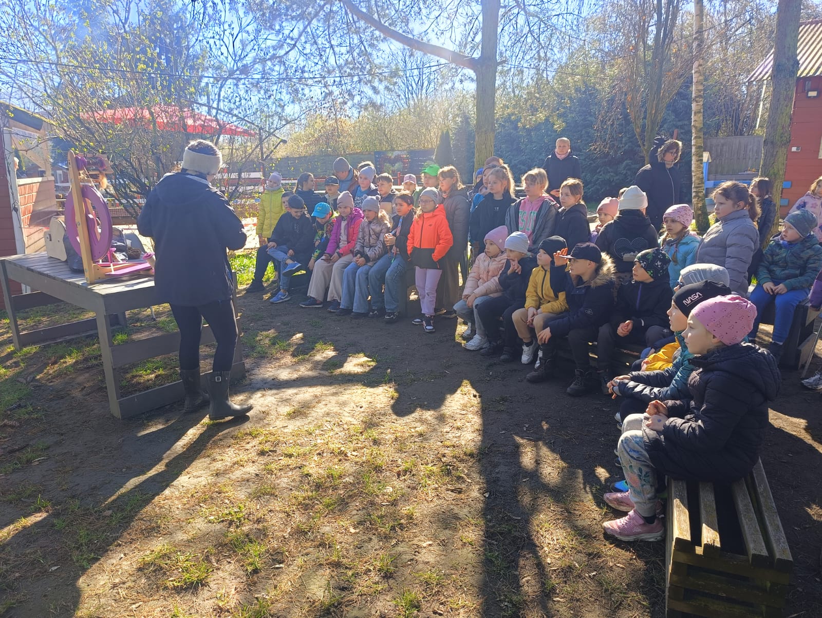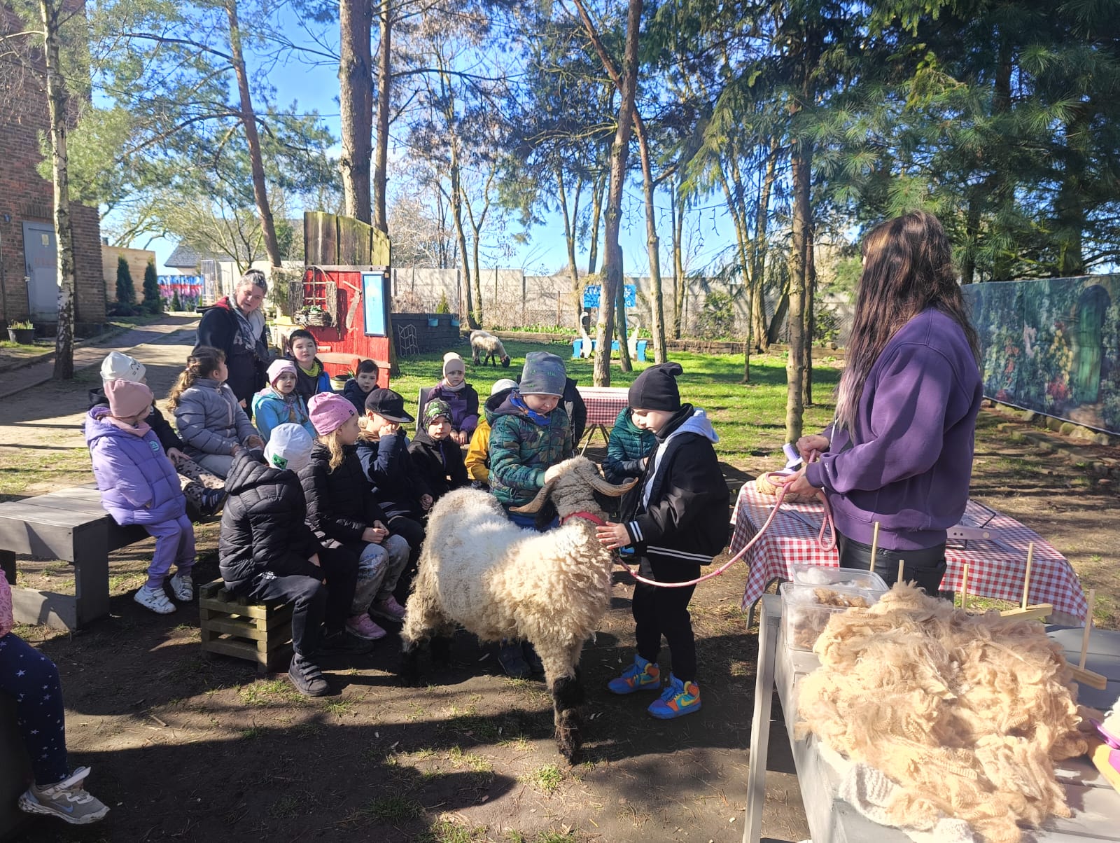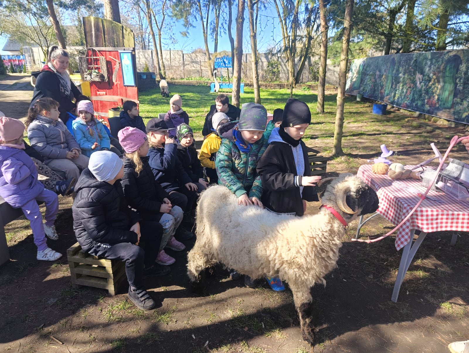 W środę 1 kwietnia 2026 📅 klasy 1 b i 3 a 👧👦 wzięły udział w Warsztatach Wielkanocnych 🐣🌿 w Alpakowym Gaju 🦙 w Bobolinie 📍. Dzieci poznały zwierzęta 🐑🐓 żyjące na wiejskim podwórku 🌾, głaskały je 🤲 i karmiły 🥕. Uczestniczyły w warsztatach wyrobu wełny alpaczej 🧶, oraz plastycznych zajęciach wielkanocnych 🎨🥚. Nie zabrakło również Święconki 🧺, i zajęć dotyczących tradycji i zwyczajów wielkanocnych ✝️🐣 oraz symboliki potraw 🍞🥚. Było ognisko 🔥, szukanie jajek 🥚🔍 i prezenty 🎁 od Zająca 🐰. Wspaniale rozpoczęliśmy wielkanocną przerwę świąteczną 🌸🐣.